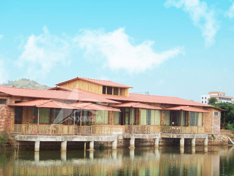 輕盈易施工: 相較傳統(tǒng)瓦材,合成樹(shù)脂瓦更輕便易搭建,提高了施工效率,降低了綜合成本。